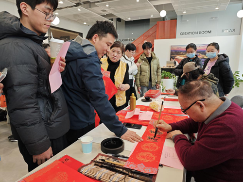 活動當(dāng)天,鄭州市文聯(lián)的書法家們受邀來到現(xiàn)場。他們個個精神飽滿,手執(zhí)毛筆,在一張張紅紙上揮灑自如,書寫著寓意深遠的新年序言。這些序言既是對過去一年的總結(jié),也是對新年的美好期許。書法家們的精彩表演贏得了現(xiàn)場觀眾的連連稱贊,租戶們紛紛表示:“書法家們寫的字真是太好了!‘福’字看著就喜慶,春聯(lián)的寓意也都非常美好。”
