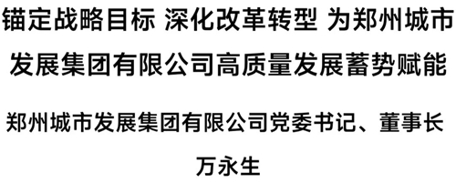 下面,為您推出鄭州城市發(fā)展集團(tuán)有限公司黨委書(shū)記、董事長(zhǎng)萬(wàn)永生署名文章《錨定戰(zhàn)略目標(biāo) 深化改革轉(zhuǎn)型 為鄭州城市發(fā)展集團(tuán)有限公司高質(zhì)量發(fā)展蓄勢(shì)賦能》——