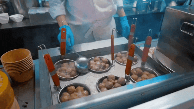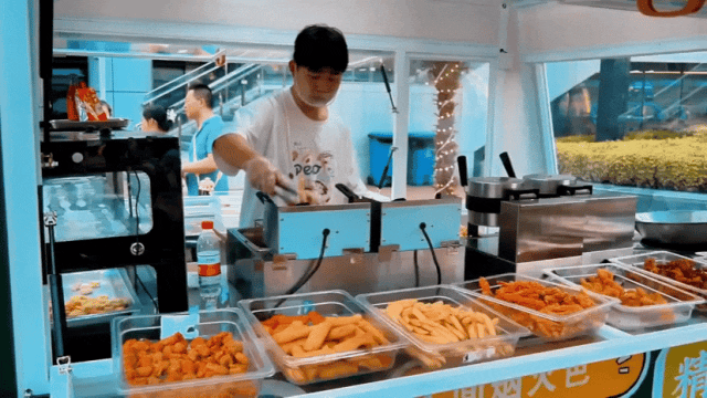 在夜市兩旁,章魚燒、特色酥肉、撈汁小海鮮、小龍蝦……十余家風味小吃店一字排開,琳瑯滿目,吸引了不少消費者駐足品嘗。