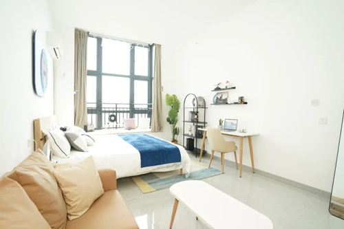 項目配備智能門鎖、獨立衛浴、床、衣柜、書桌、洗衣機、空調、冰箱、抽煙機、晾衣架等,公寓精裝修設計,拎包入住,智能化管理,商業、教育配套齊全,滿足入住人群生活、社交需求。