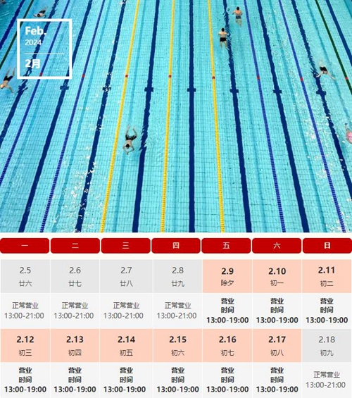 游泳館春節假期營業時間: