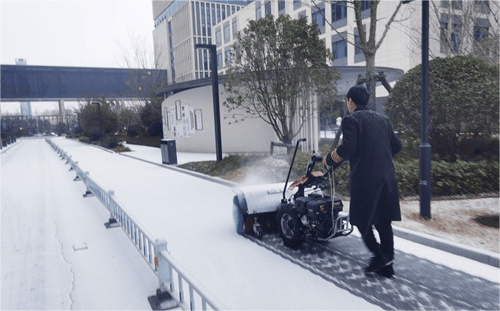 城發產城公司密切關注天氣變化,提前部署應急隊伍。采用“機械+人工”協同模式,按“先主后次”原則,用除雪滾刷快速清掃主干道,人工細化清理死角,最后鋪灑融雪劑,實現路面無積雪、無結冰,為園區企業員工出行保駕護航。